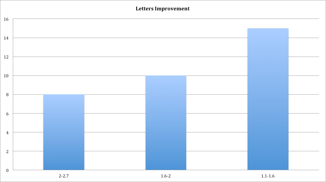 Determining improvement in vision is easy. You use an eye chart like the one below.