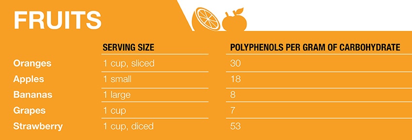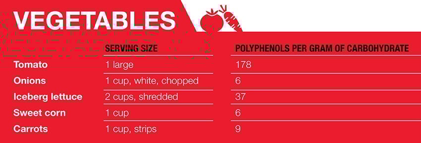 The Zone Diet is concerned not only about the amount of polyphenols consumed, but also the levels of carbohydrates that come with them. So to get the optimal health benefits, what is important is the ratio of polyphenols per gram of carbohydrate in any vegetable or fruit. The higher the polyphenol/carbohydrate content, the greater the health benefits. That also means the lower the polyphenol/carbohydrate ratio, the fewer the health benefits.